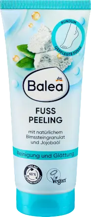 Ce gommage pour les pieds Balea nettoie et adoucit la peau rugueuse, en éliminant délicatement les cellules mortes grâce aux particules naturelles de pierre ponce, pour des pieds plus lisses et soignés.